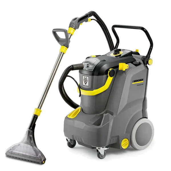 A embalagem contém: Mangueira de pulverização com alimentação de água integrada, 4 m; Tomada para cabeça de lavagem profissional, PW 30/1; Mangueira de vácuo de pulverização (m), 4 m; Alça adicional; Bocal largo para piso com lábio de sucção flexível; Punho com gatilho